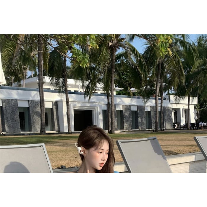 Set: Long-Sleeve Tie Dye Crop Top + Halter Bikini Top + Bikini Bottom + Cover Up