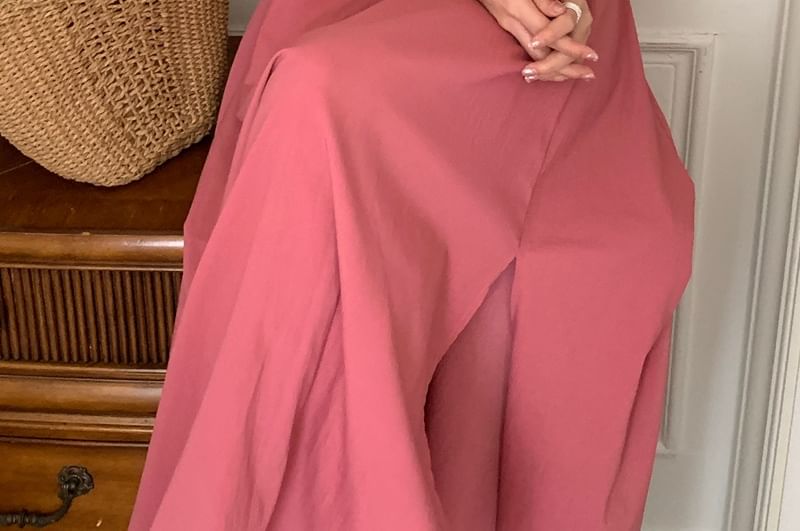 Set: Short-Sleeve V-Neck Collared Crop Blouse + High Waist Maxi A-Line Skirt
