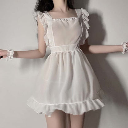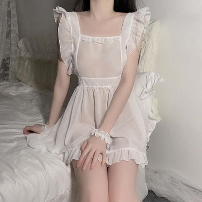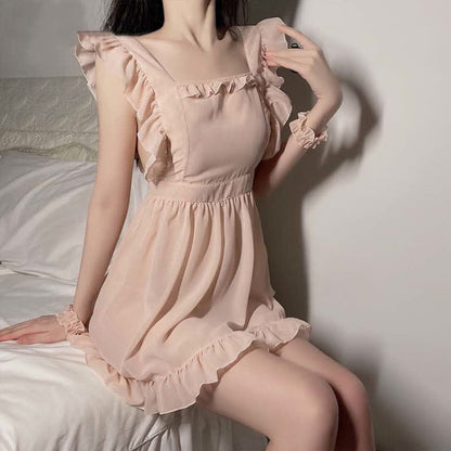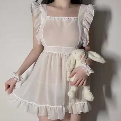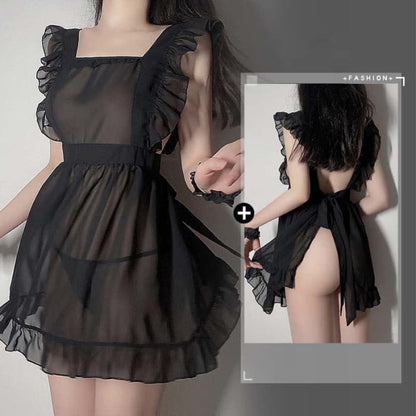 Unleash your confident and elegant side with our Sexy Maid Backless See Through Lingerie Dress. The revealing cut and sheer material will make you feel irresistible, while the maid-inspired design adds a touch of playfulness. Perfect for adding some spice to your bedroom attire.