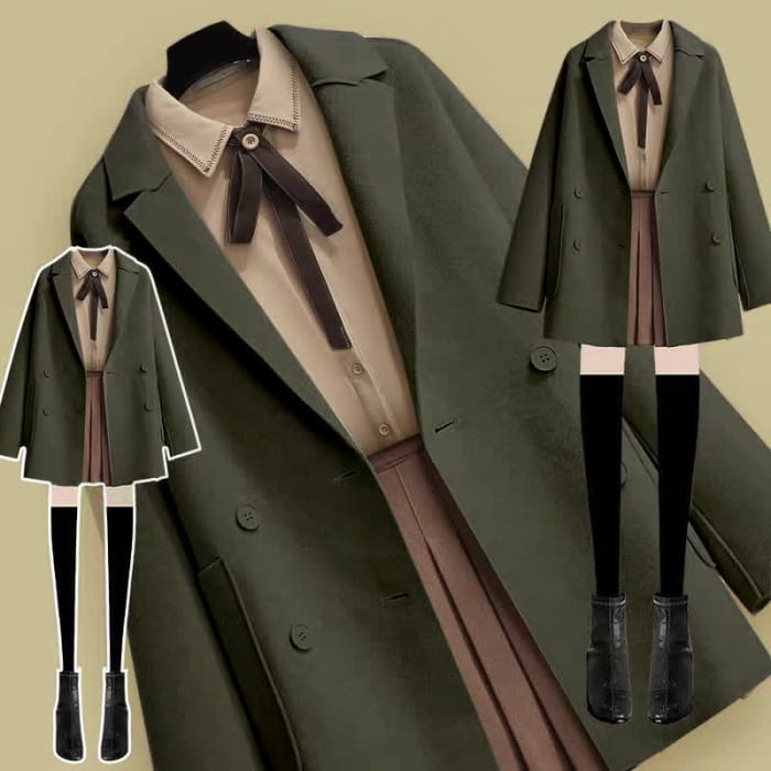 Shirt Pleated Skirt Pocket Wool Jacket Coat