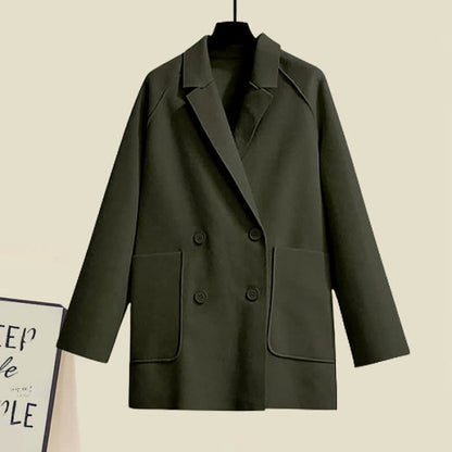 This elegant wool jacket coat features a shirt style, with a pleated skirt and convenient pockets. Stay warm and stylish in any setting with this versatile and chic piece. Perfect for a day at the office or a night out on the town, this jacket coat is a sophisticated addition to any wardrobe.