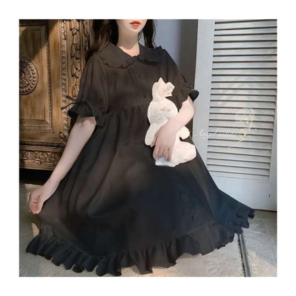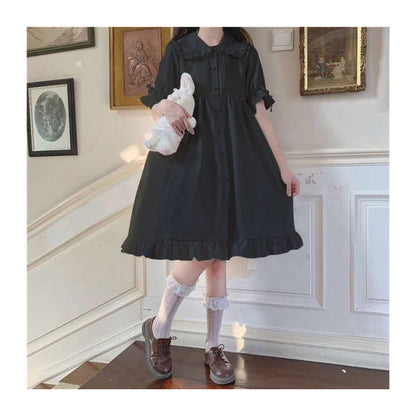 Lolita Short-Sleeve Frill Trim A-Line Shirt Dress