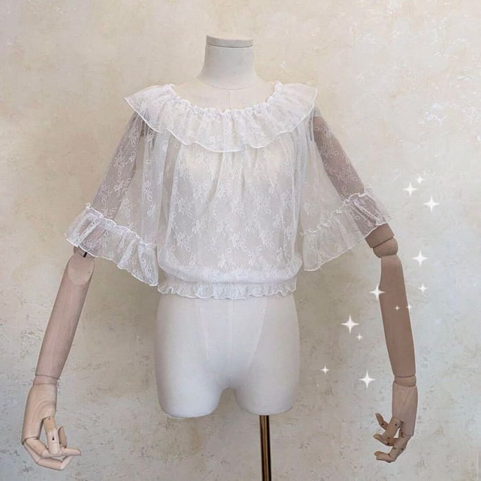 Lolita Short-Sleeve Ruffle Blouse / Lace Blouse / Long-Sleeve Lace Top