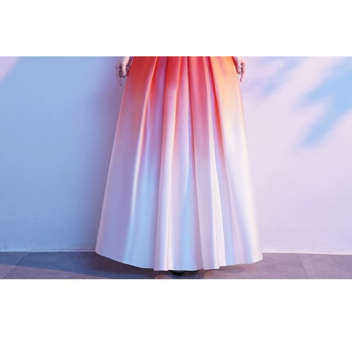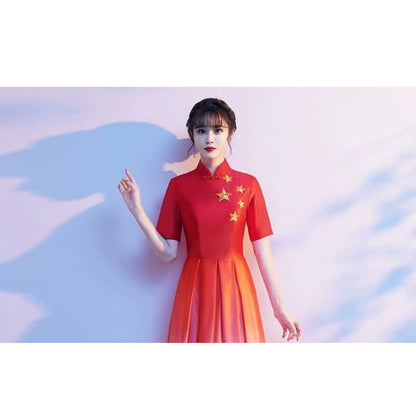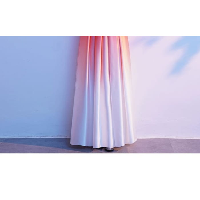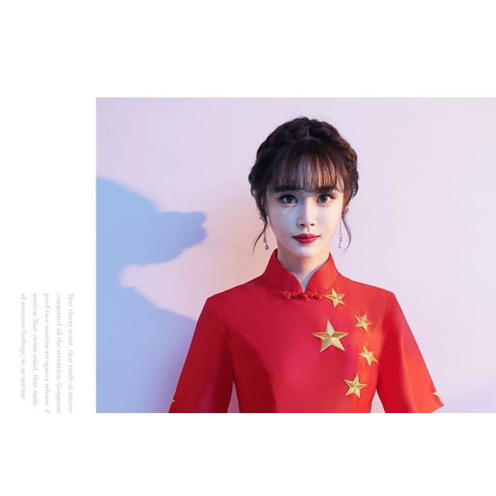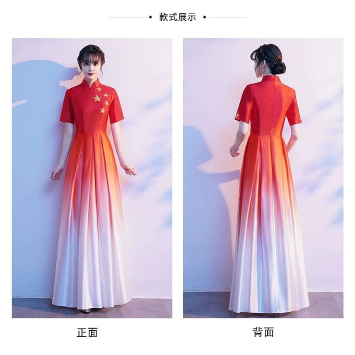 Short-Sleeve Star Embroidered Gradient Sheath Evening Gown