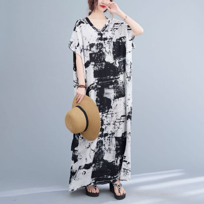 Short-Sleeve Tie-Dye Maxi Oversized T-Shirt Dress