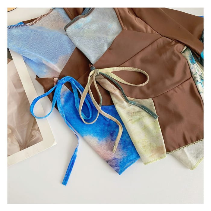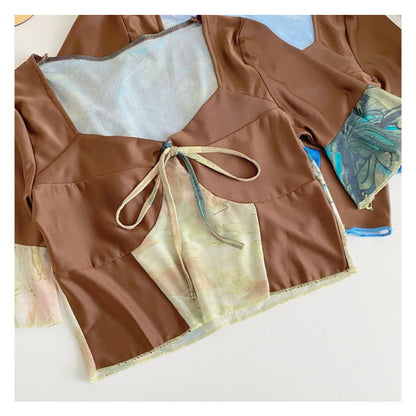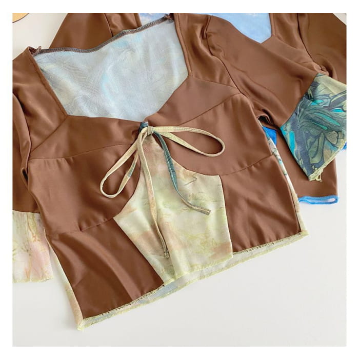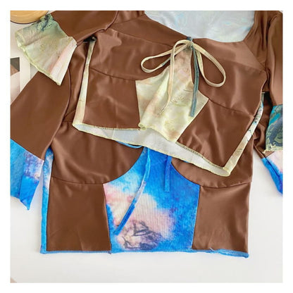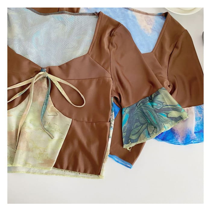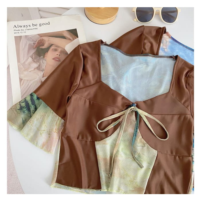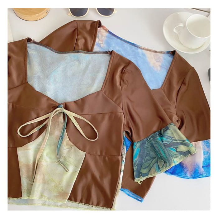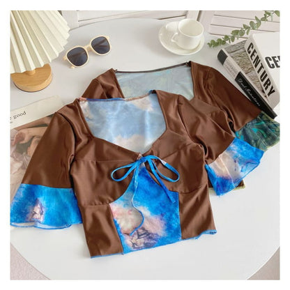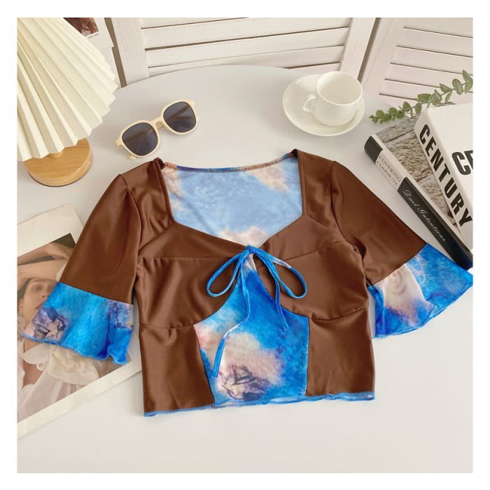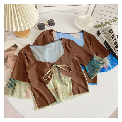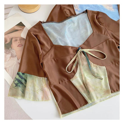 Short-Sleeve V-Neck Color Block Crop Top