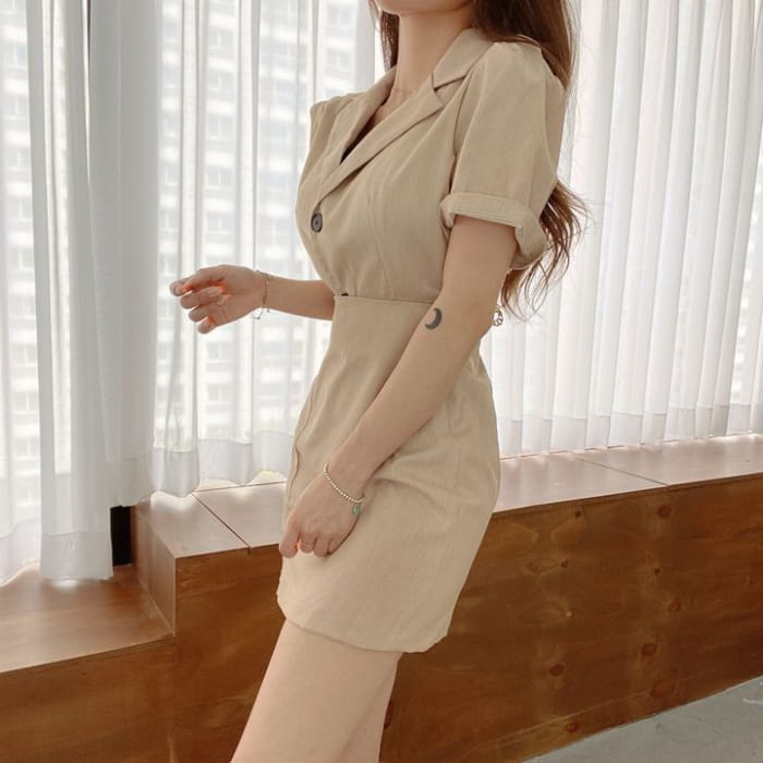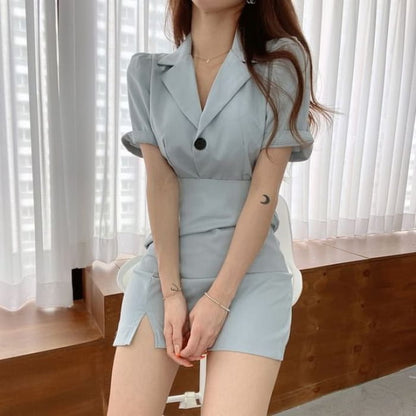 Short-Sleeve V-Neck Plain Mini Sheath Blazer Dress
