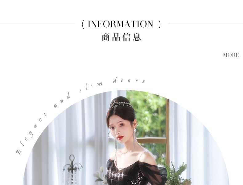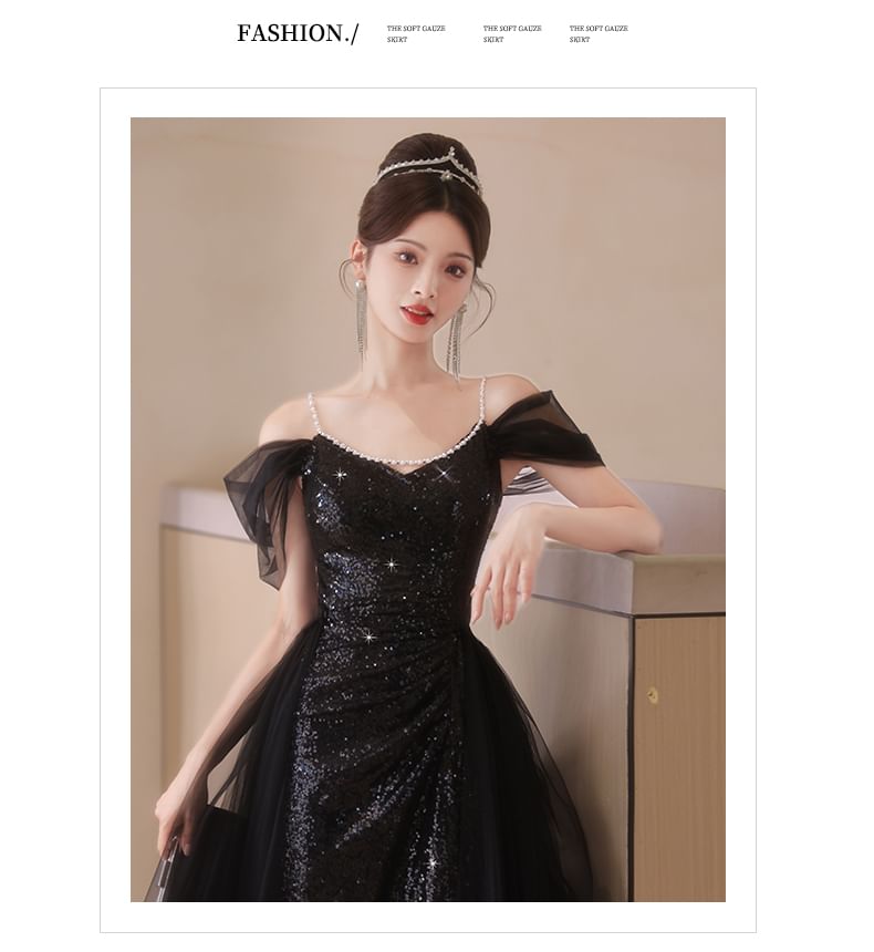 Short-Sleeve Cold Shoulder Sequin Maxi Mermaid Gown