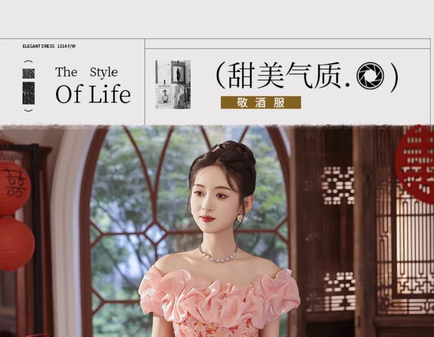 Short-Sleeve Ruffle Floral Mesh Midi A-Line Evening Dress