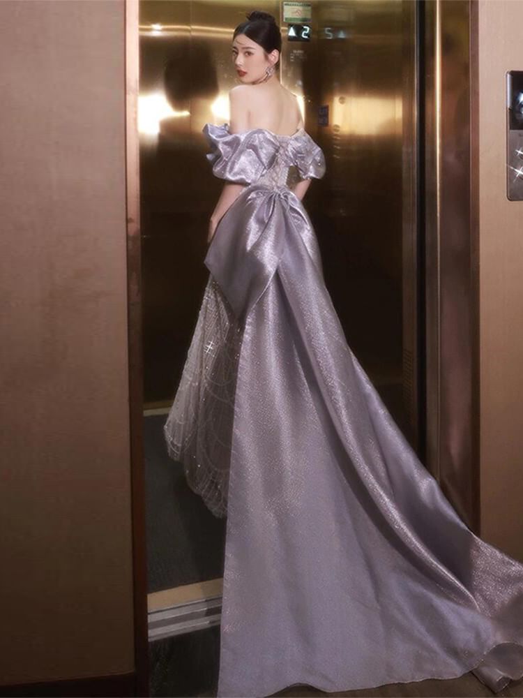 Off Shoulder Ruffle Sleeve Sequin Mermaid Evening Dress