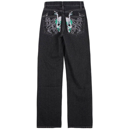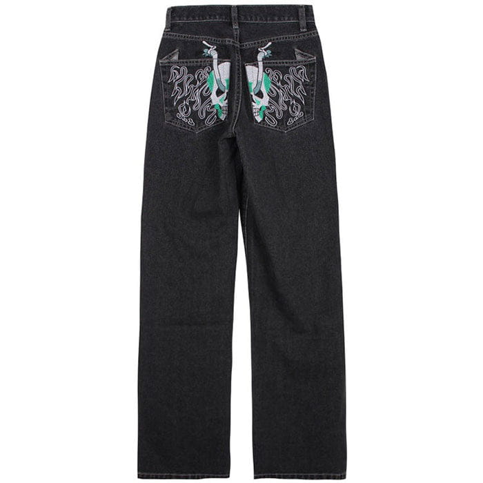 Add a touch of edginess to your wardrobe with our Skeleton Embroidery Jeans. Featuring unique skeleton embroidery, these jeans will make a statement and elevate any outfit. Perfect for those looking to stand out from the crowd.
