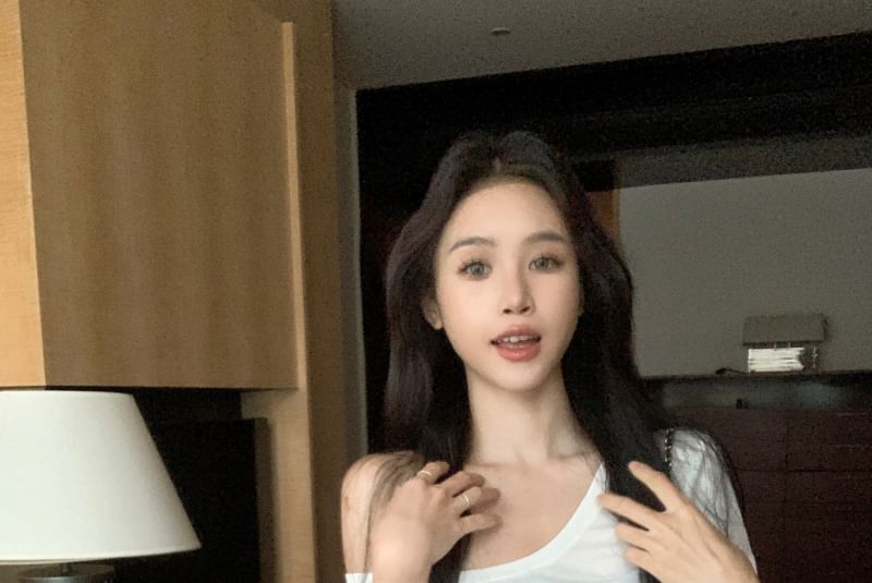 Skirt Overlay Yoga Shoulder / Plain Short-Sleeve T-Shirt Pants Off High Crop Waist