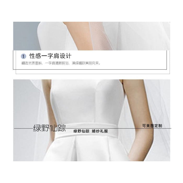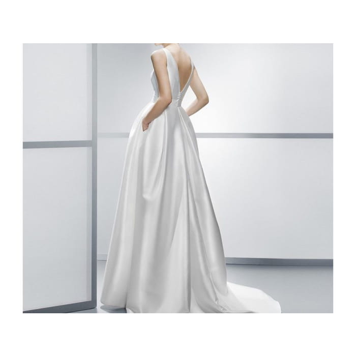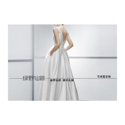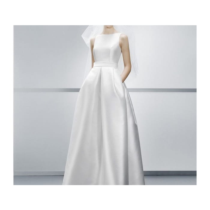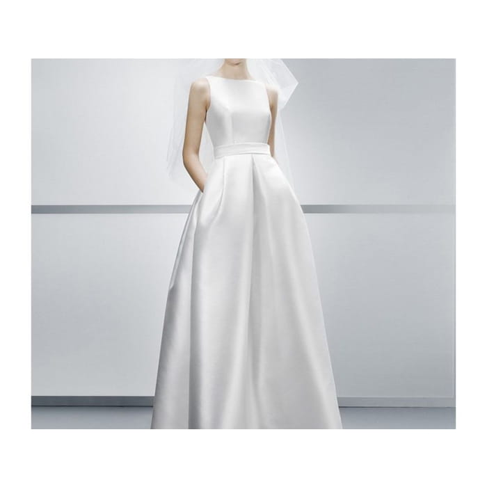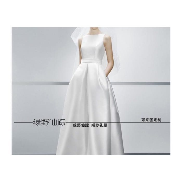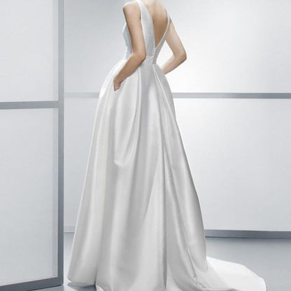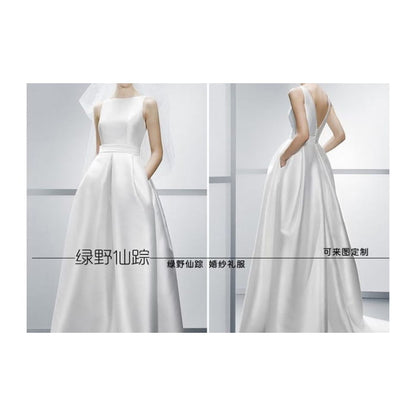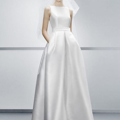 Sleeveless Boat Neck Plain Satin A-Line Wedding Gown
