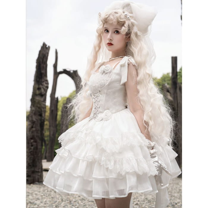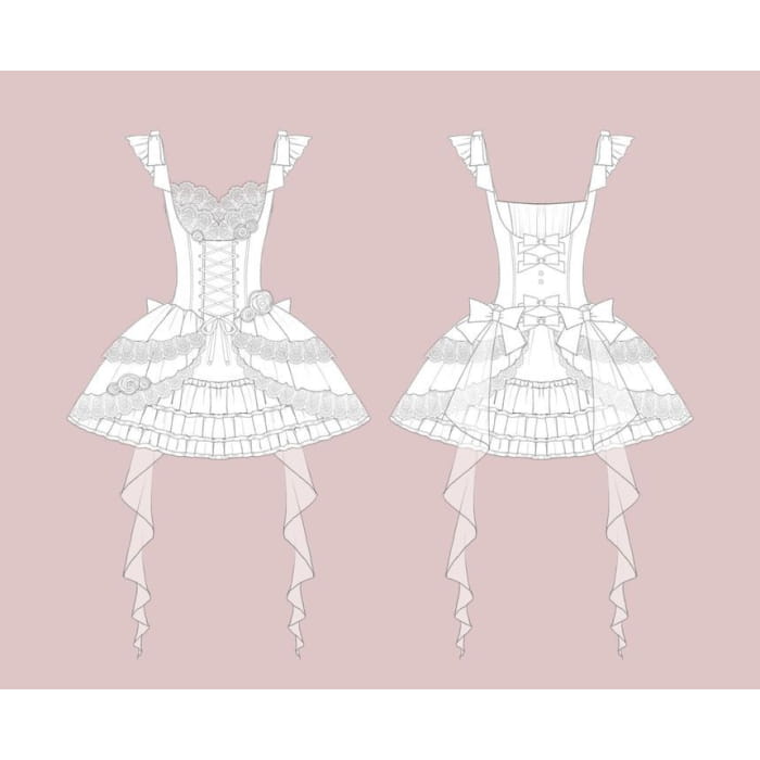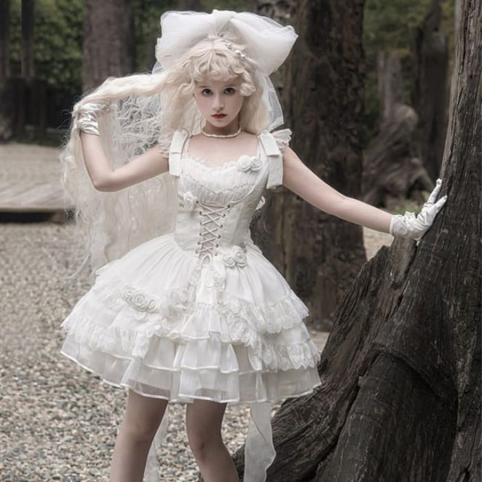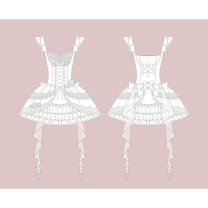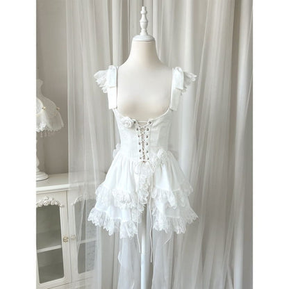 Lolita Sleeveless Corset Top / Tiered Mini Skirt / Spaghetti Strap Dress / Set