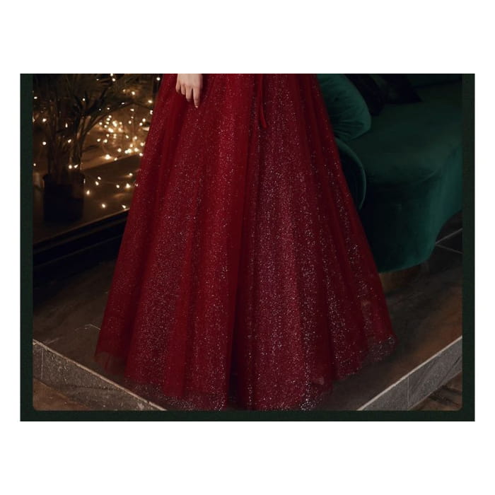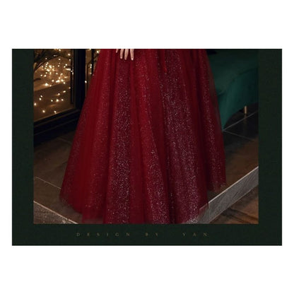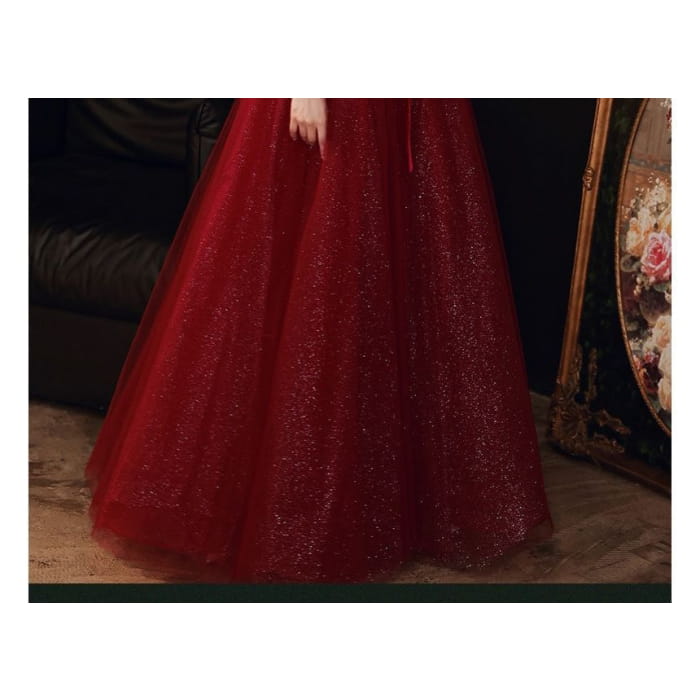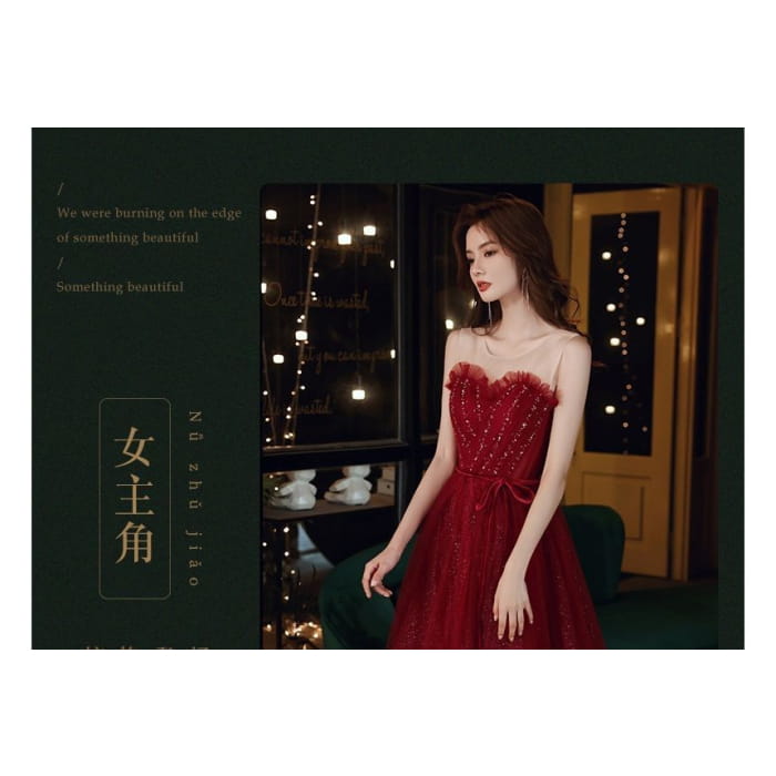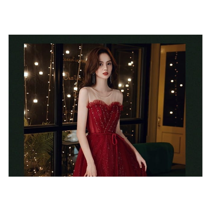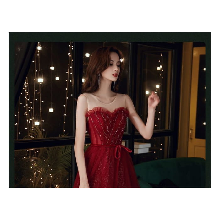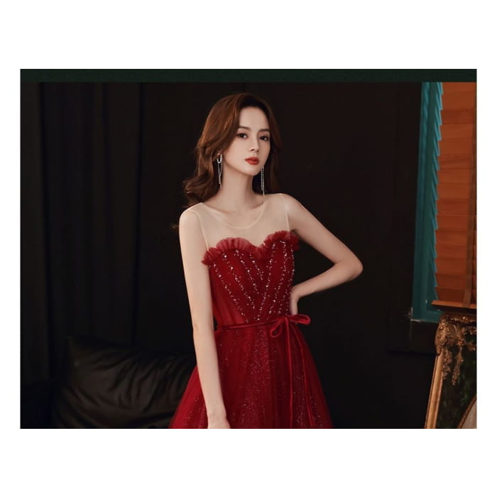Sleeveless Crew Neck Mesh A-Line Evening Gown