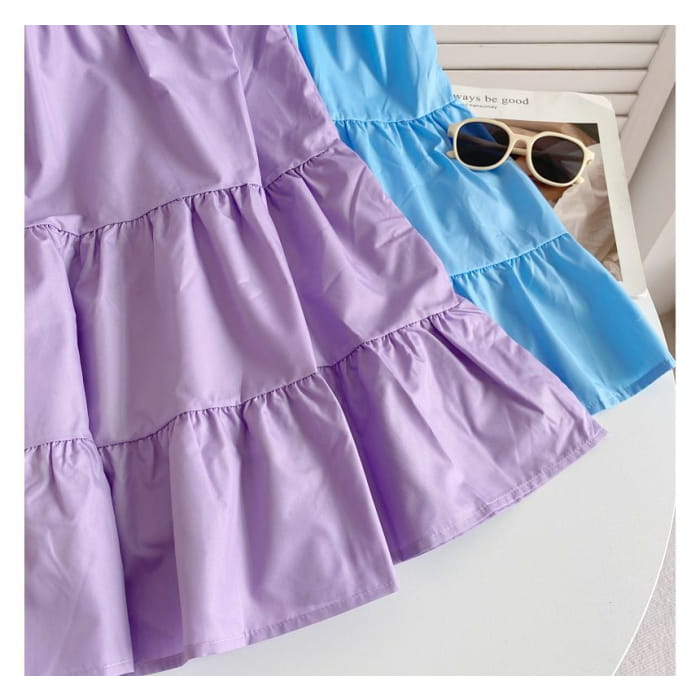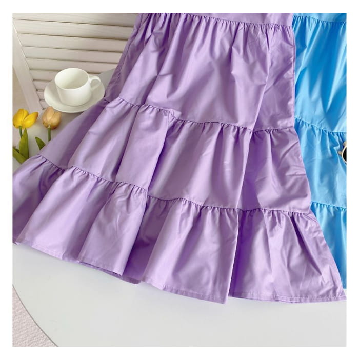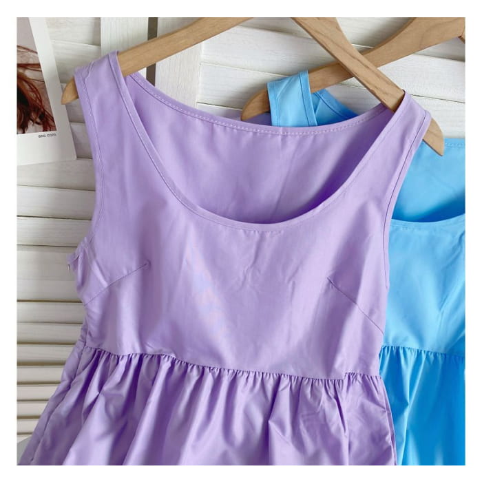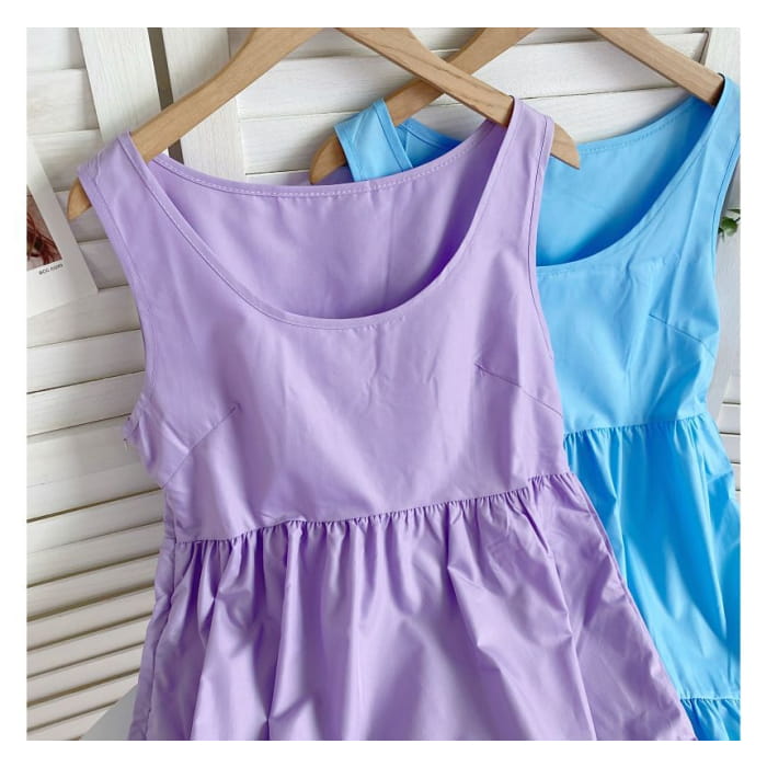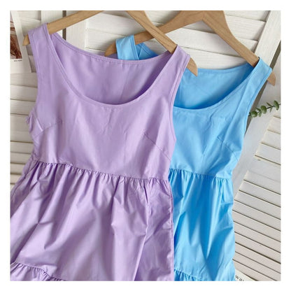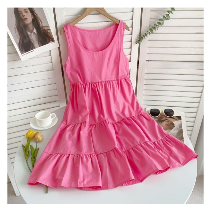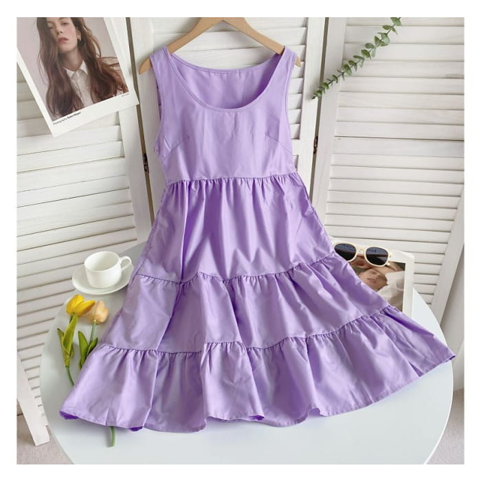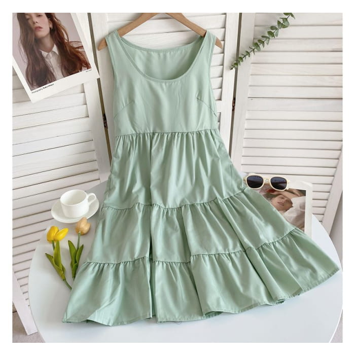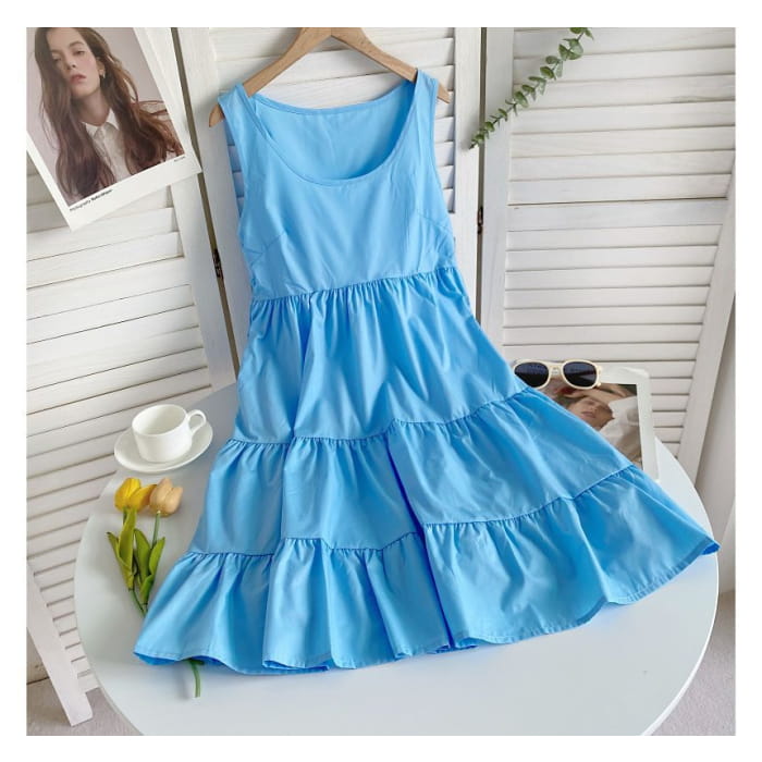 Sleeveless Scoop Neck Plain Tiered A-Line Dress