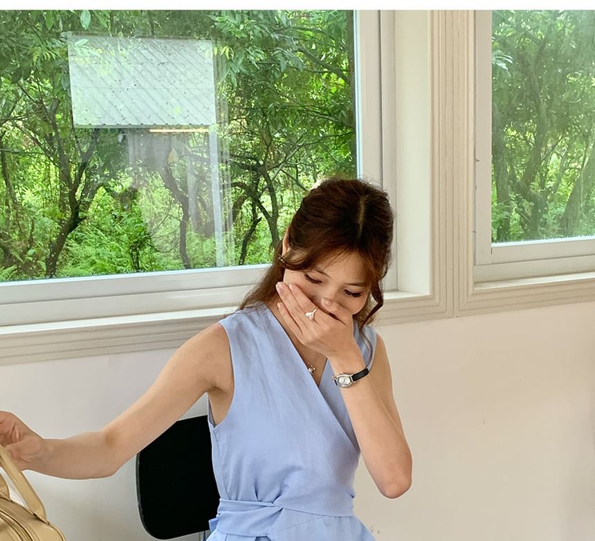 Sleeveless V-Neck Plain Asymmetrical Midi A-Line Dress