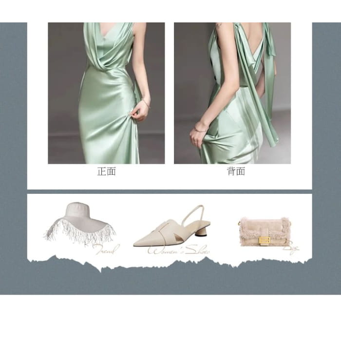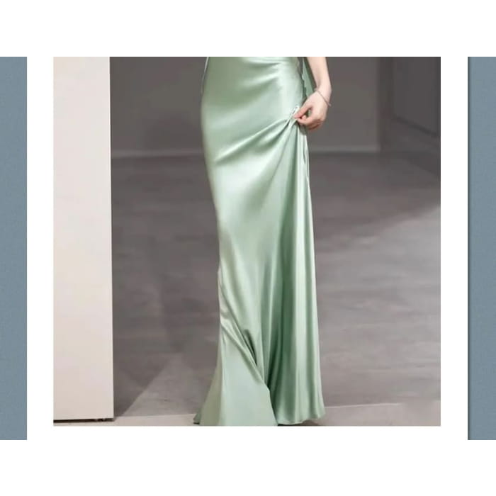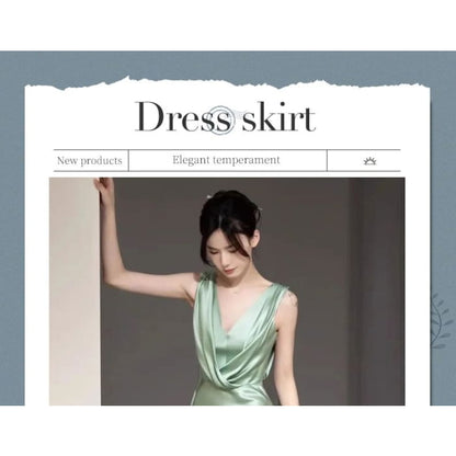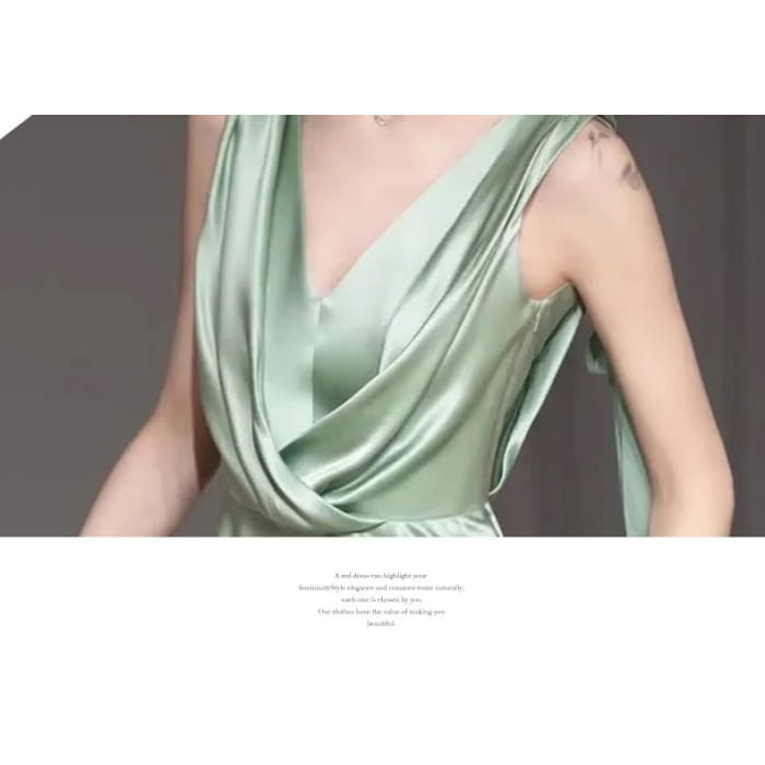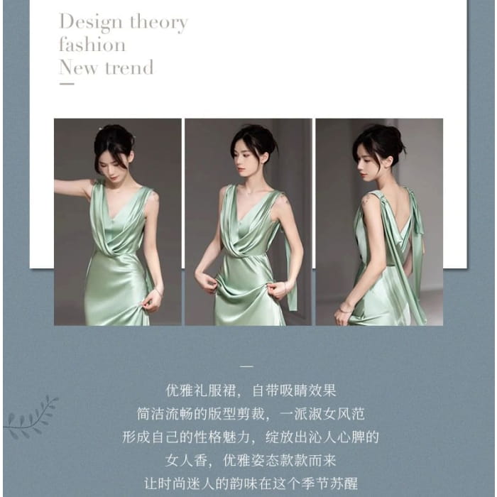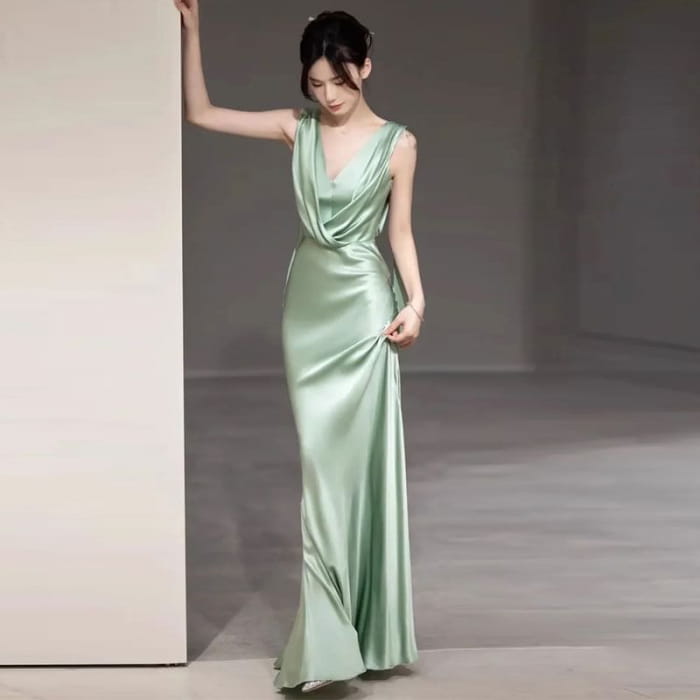 Sleeveless V-Neck Plain Open Back Satin Mermaid Evening Gown