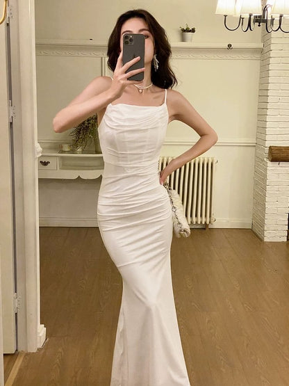 Spaghetti Strap Cowl Neck Plain Ruched Mermaid Evening Dress