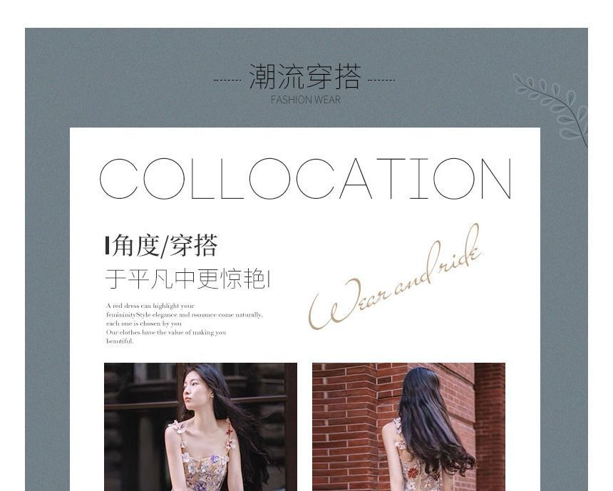 Spaghetti Strap Floral Print Mesh Midi A-Line Evening Dress
