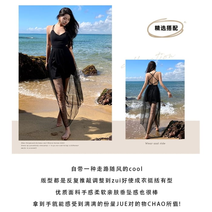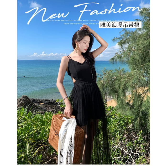 Spaghetti Strap Plain Cross Back Midi Mesh Sundress