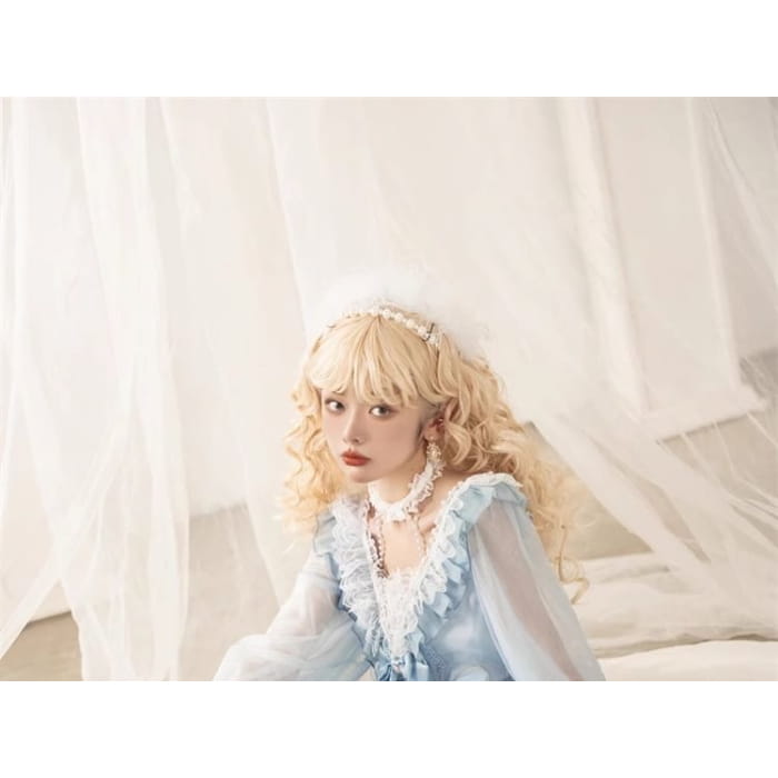 Square Neck Butterfly Print Bow Ruffle A-Line Lolita Dress / Lace Socks / Crinoline (Various Designs)
