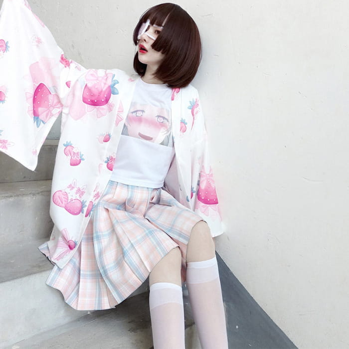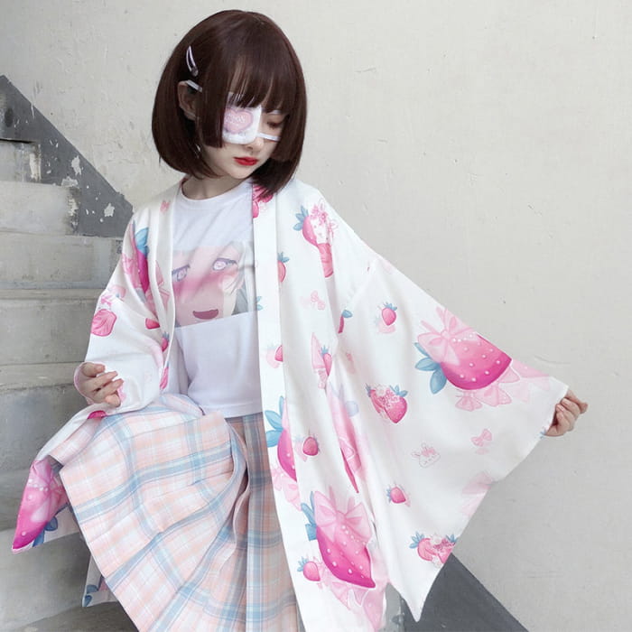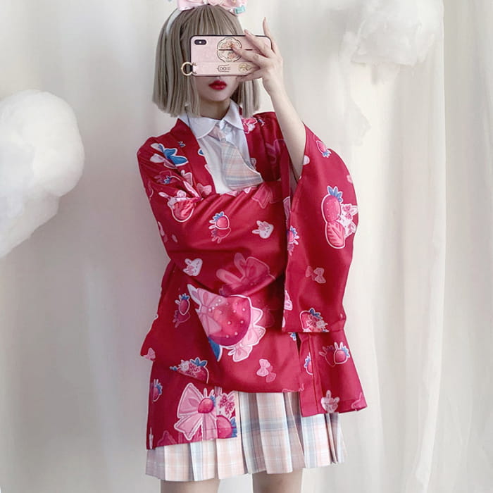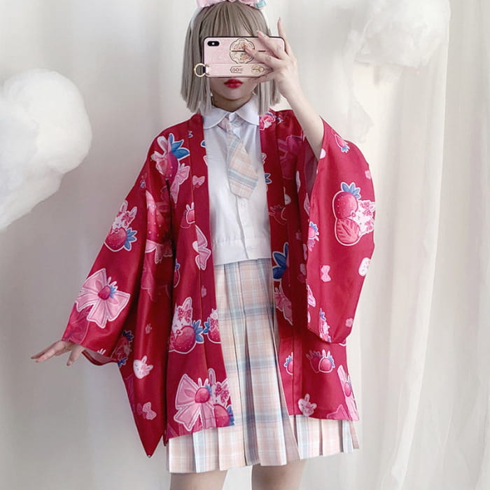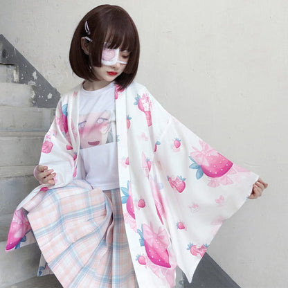 Strawberry Loose Cardigan Kimono Outerwear