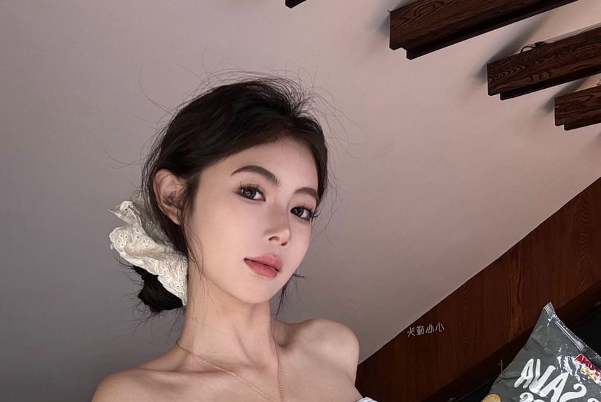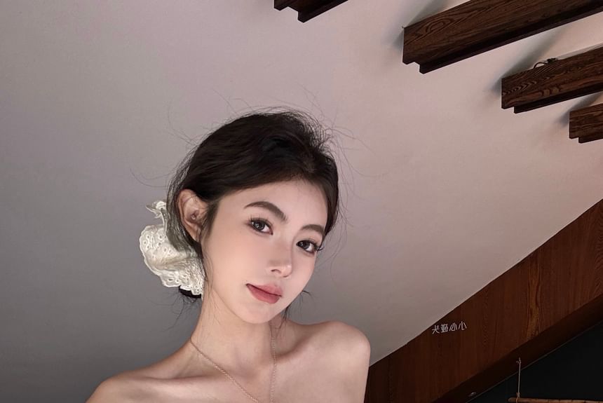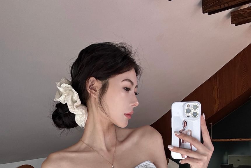 Striped Plain Crop Top Pants Leg High Waist Tube Bow / Accent Wide