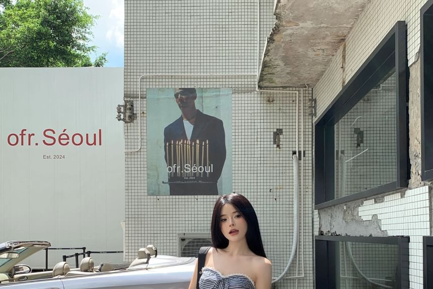 Strapless Striped Tube Top / Mid Waist Wide Leg Pants