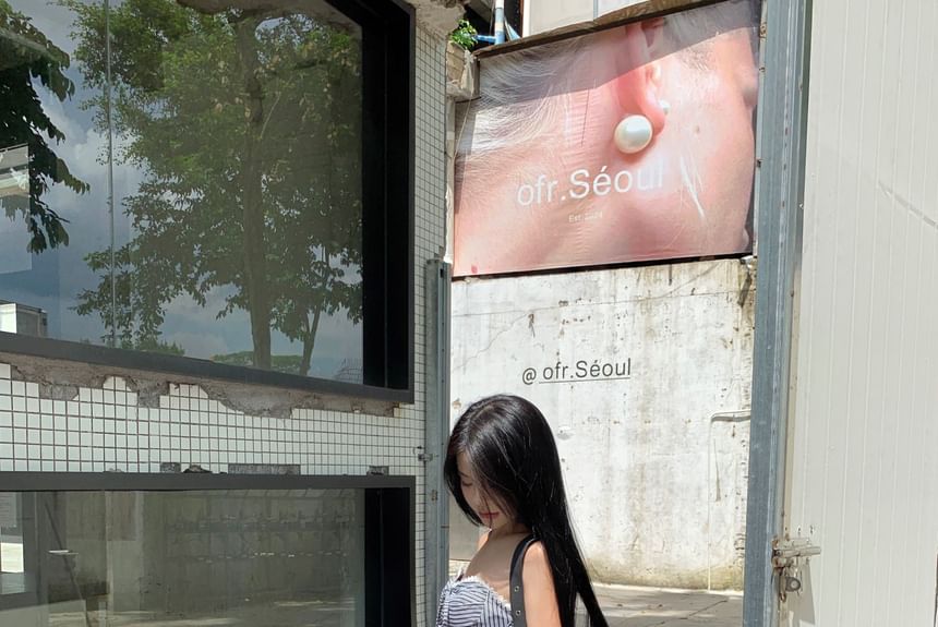 Striped Strapless Pants Wide Mid Leg Tube / Top Waist