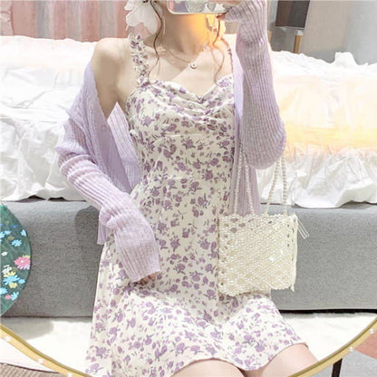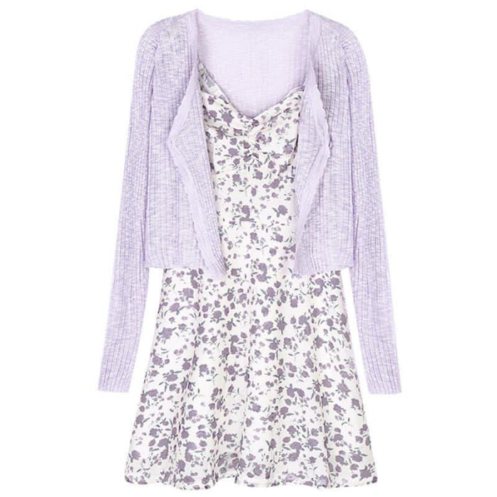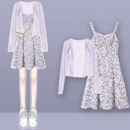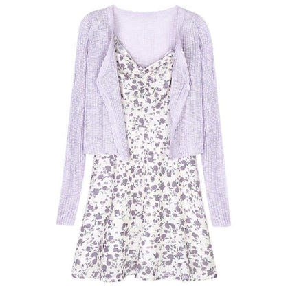 This elegant set includes a sweet cardigan with a floral print, paired with a matching slip dress. Perfect for adding a touch of feminine charm to any outfit. The lightweight fabric ensures comfortable wear all day long. Embrace your elegant side with this beautiful set.