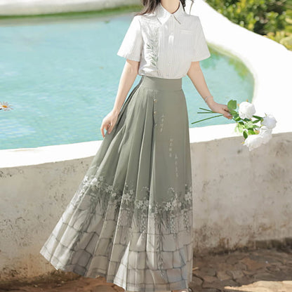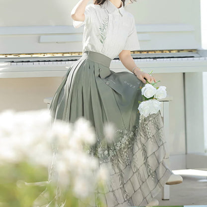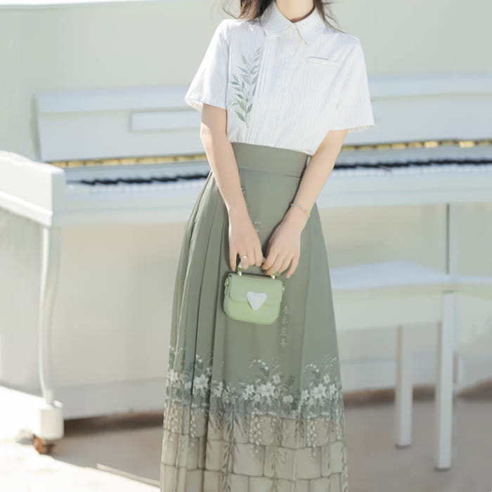 Elevate your style with our elegant Sweet Leaf and Flower Print set. This stylish shirt and skirt duo features a beautiful leaf and floral print, offering the perfect balance of sweet and sophisticated. Perfect for any occasion, add this set to your wardrobe for versatile and chic looks.