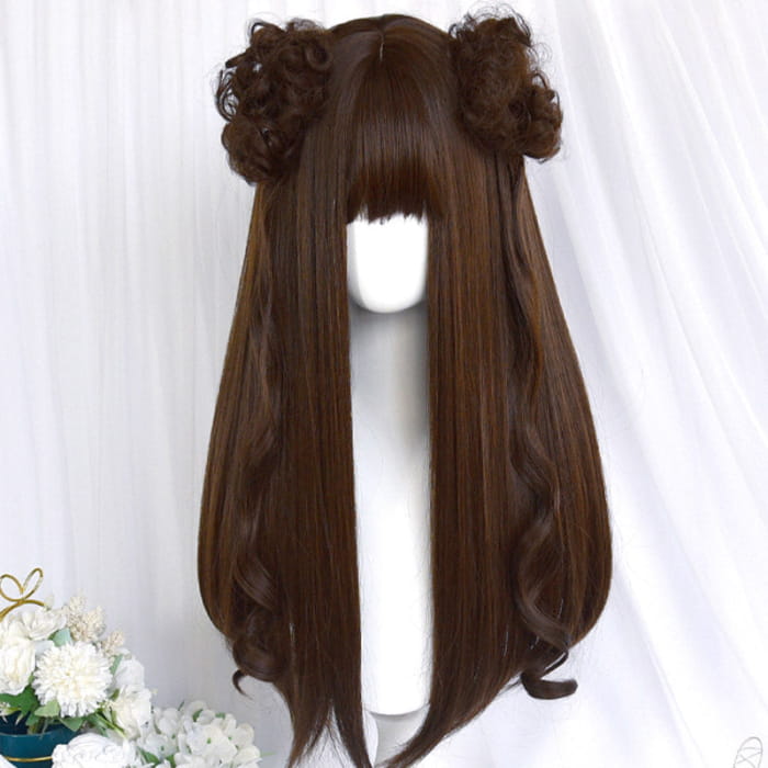 Sweet Long Straight Flower Ball Wig With Neat Bangs
