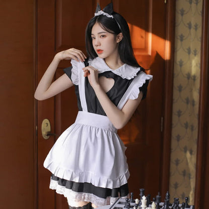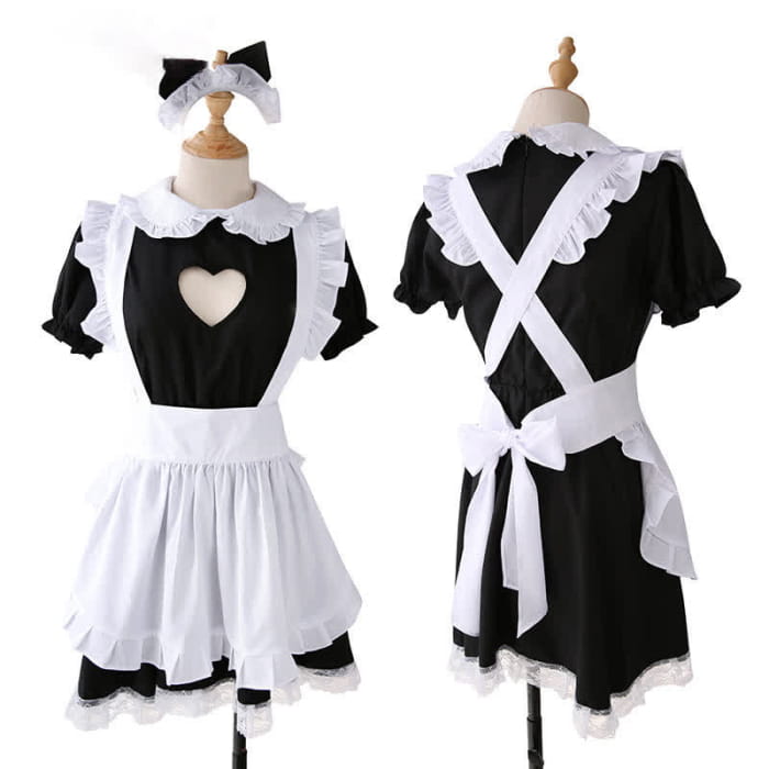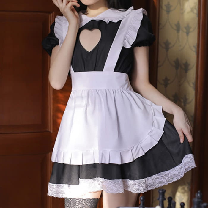 Sweet Love Heart Hollow Out Ruffled Maid Dress