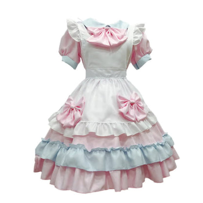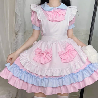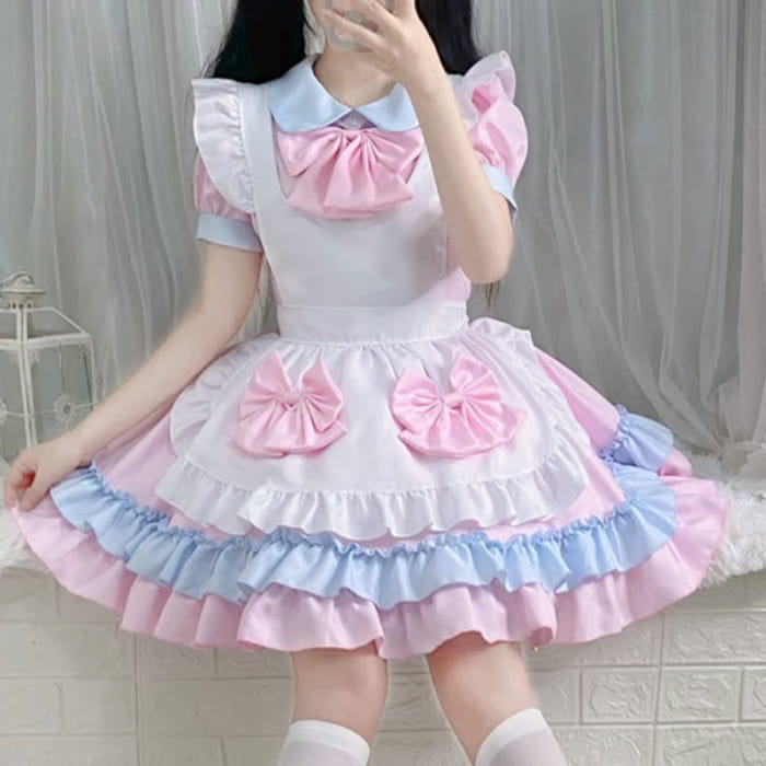 Sweet Pink Bow Knot Ruffled Maid Lolita Dress