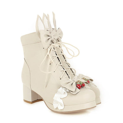 Sweet Strawberry Bow Lolita Lace Up Boots