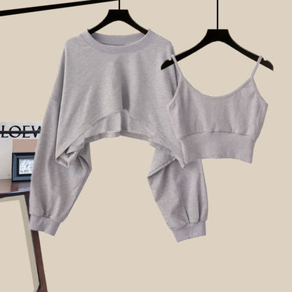 Sweet Tank Top Sweatshirt Casual Pants Set