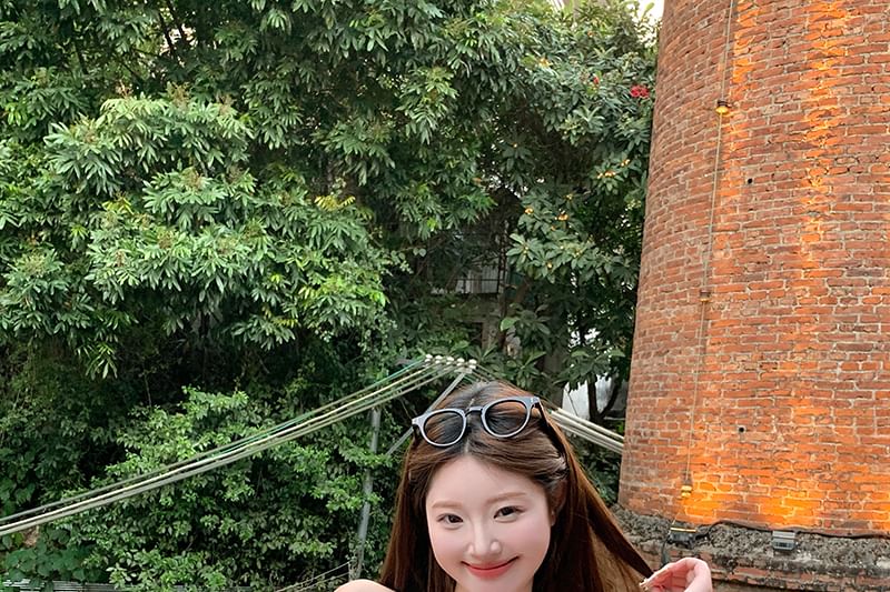 Plain Halter Top / Puff-Sleeve Bow Open Back Peplum Blouse