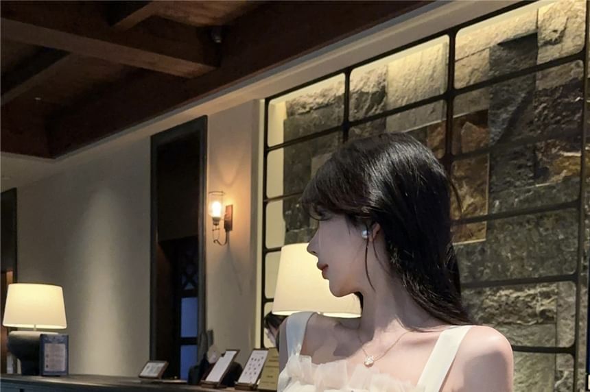 Top Fit Panel Tank Crop Butterfly Sequin Slim Padded Mesh