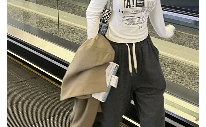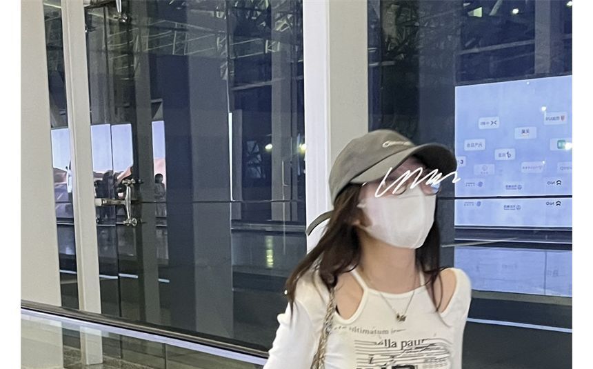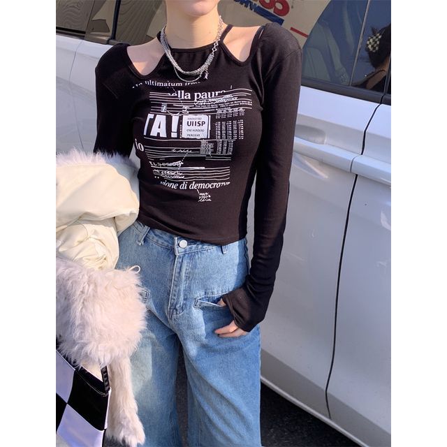 Top Long-Sleeve Slim-Fit Cold-Shoulder Print