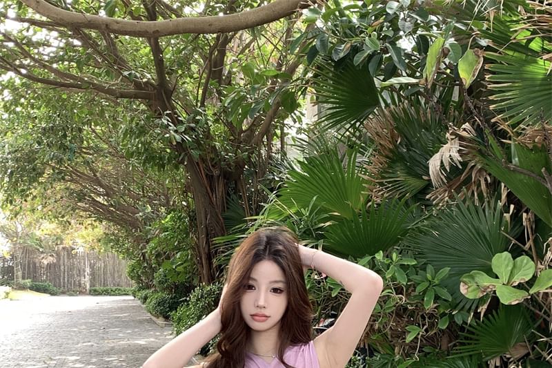 Top Plain Bodysuit Ruched Sleeveless Panel