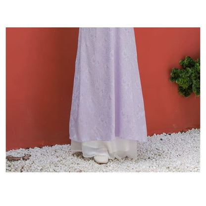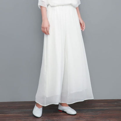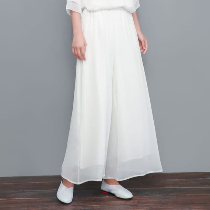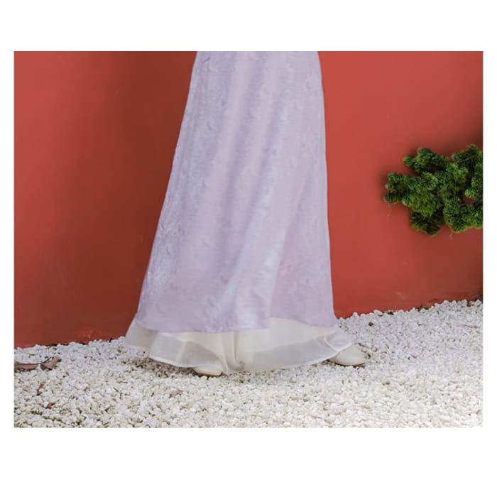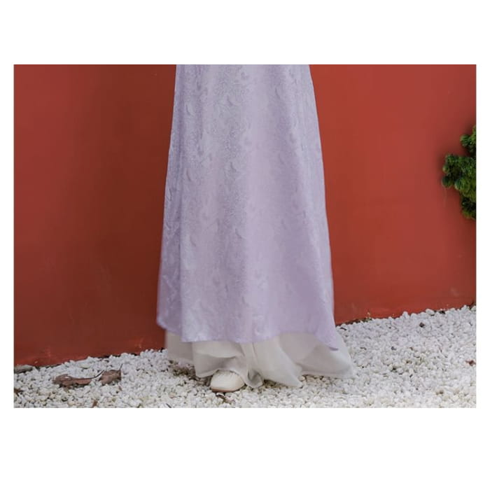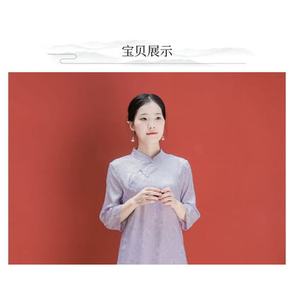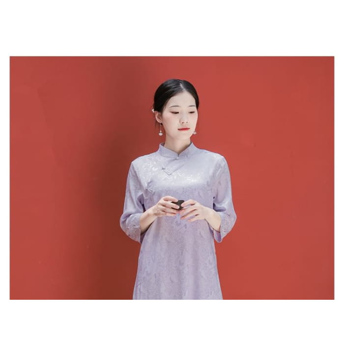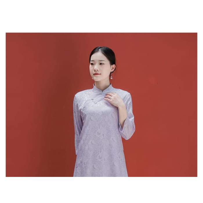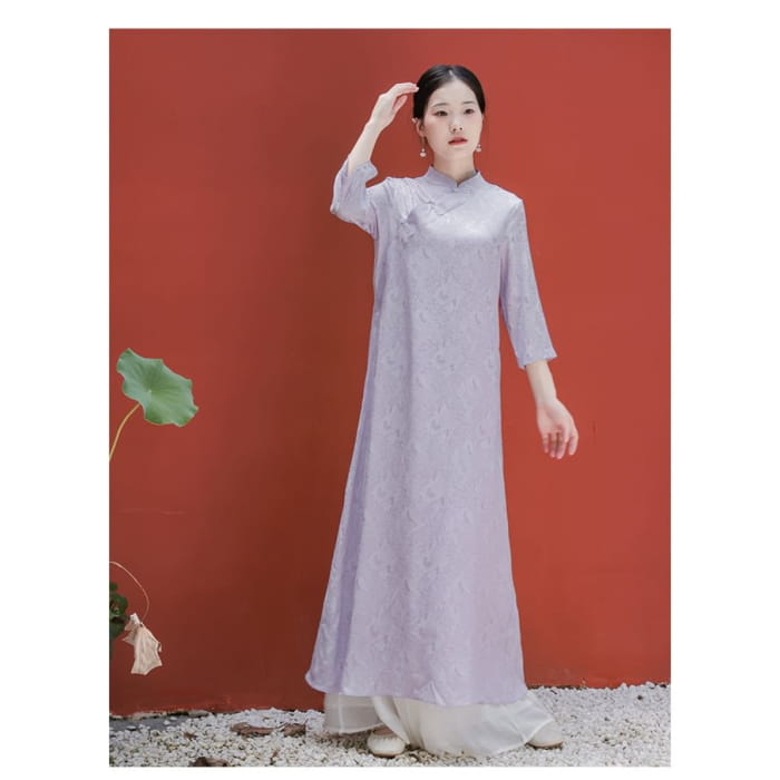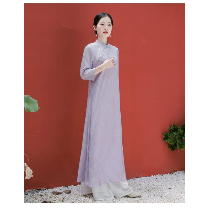 Traditional Chinese Long-Sleeve Print Maxi A-Line Dress / Wide Leg Pants