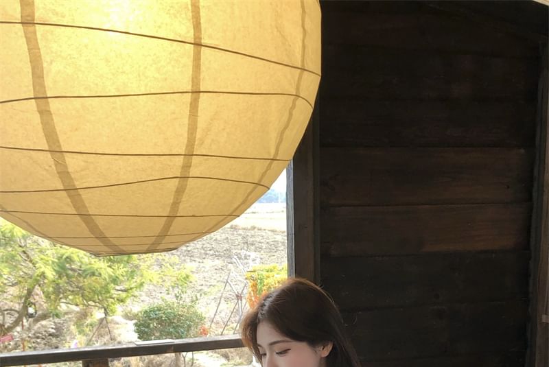 Trim Puff-Sleeve V-Neck Ruffle Lace Blouse Plain