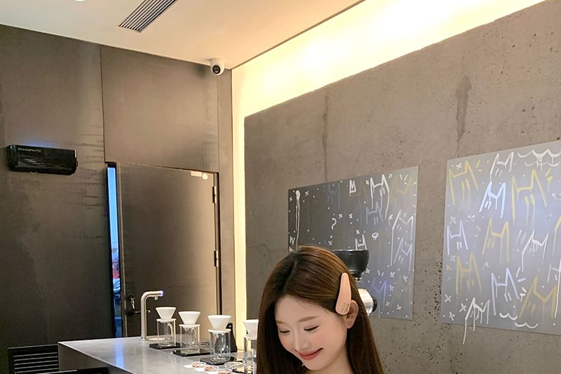 Twisted Top Short-Sleeve V-Neck Plain Crop