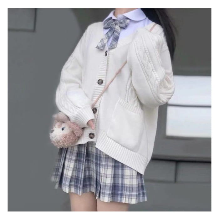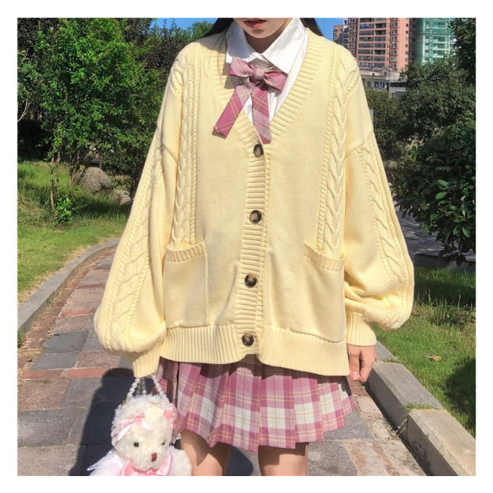 V-Neck Cable Knit Cardigan