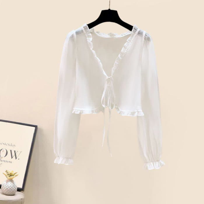 V-neck Cardigan Lattice Print Pink Slip Dress Set