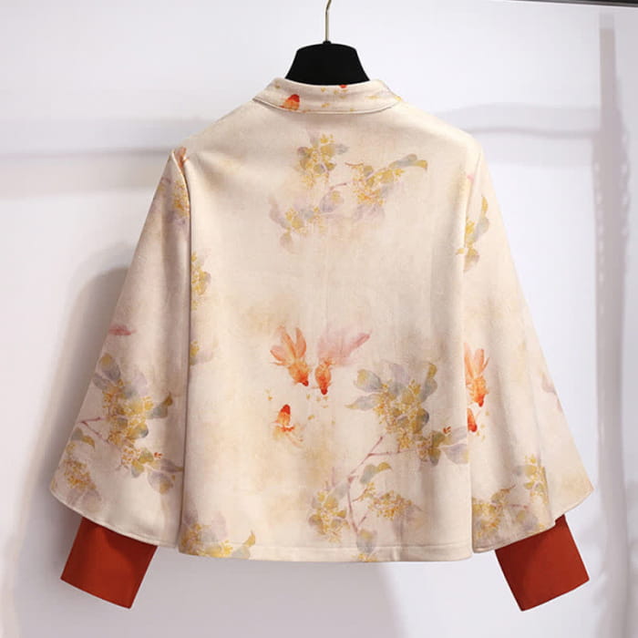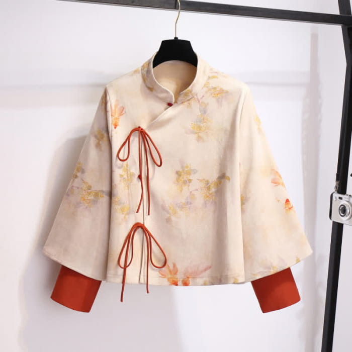 Vintage Bamboo Print Sweatshirt High Waist Pleated Skirt