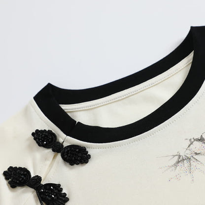 Vintage Bamboo Print Tassels T-Shirt Pleated Skirt