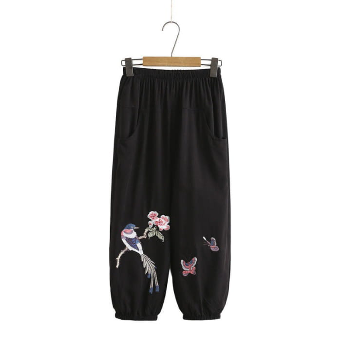 Add a touch of elegance to your wardrobe with our Vintage Bird Embroidery Buckle T-Shirt Pants Set. This unique set features vintage-inspired bird embroidery and a stylish buckle detailing that adds a sophisticated touch to your look. Made with high-quality materials, it is both comfortable and stylish, making it the perfect addition to any fashion-forward wardrobe.