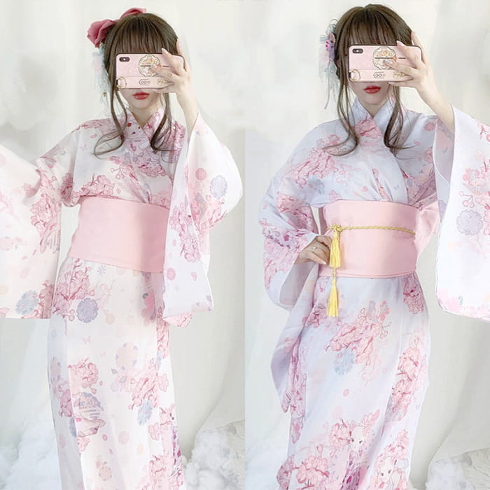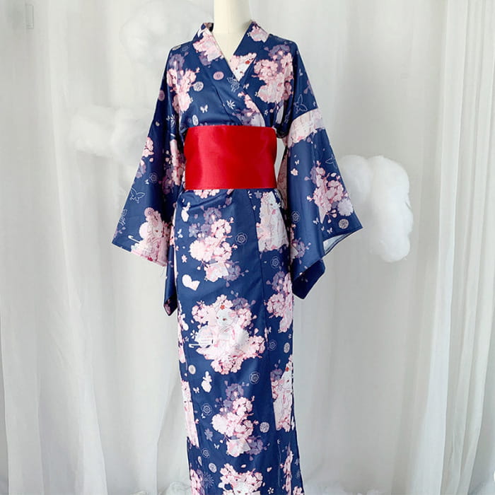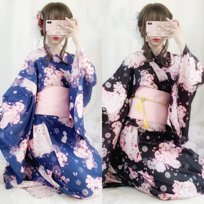 This vintage kimono dress boasts a stunning cat and sakura print, adding a touch of elegance to your wardrobe. Made from high-quality fabric, this dress is comfortable and stylish. Perfect for any occasion, this dress is a must-have for any fashion-forward individual.